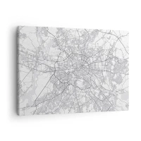 Cuadro sobre lienzo - Impresión de Imagen - Mapa detallado de la ciudad en blanco y negro - 70x50cm - Flor de Berlín - Decoración de pared moderna para salón y dormitorio ARTTOR