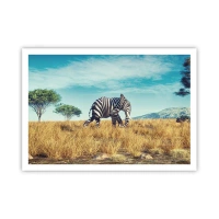 Póster - Cebra en un paisaje africano - 100x70cm - El gris ya no está de moda - Decoración de pared moderna para salón y dormitorio ARTTOR