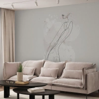 Fotomural Standard Eco - Silueta femenina en estilo de arte lineal sobre un fondo claro - 100x70cm - Una mirada no dice nada y al mismo tiempo lo dice todo - Decoración de pared moderna para salón y dormitorio ARTTOR
