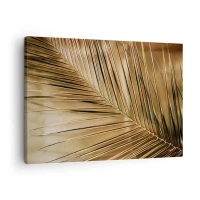 Cuadro sobre lienzo - Impresión de Imagen - Hoja de palma dorada sobre un fondo sólido - 70x50cm - Una columnata natural - Decoración de pared moderna para salón y dormitorio ARTTOR