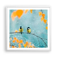 Póster en marco blanco - Cotilleo de pájaros - 60x60 cm