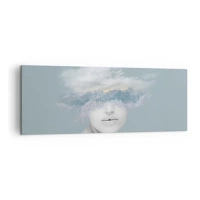 Cuadro sobre lienzo - Impresión de Imagen - Retrato de una mujer con el rostro oculto tras nubes y olas. - 140x50cm - Con la cabeza en las nubes - Decoración de pared moderna para salón y dormitorio ARTTOR