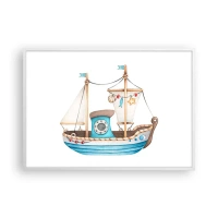 Póster - Ilustración de un barco en colores pastel sobre un fondo blanco. - 100x70cm - A la aventura - Decoración de pared moderna para salón y dormitorio ARTTOR