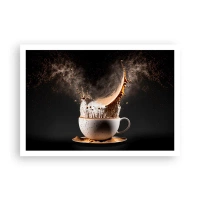 Póster - Una taza de café con una explosión dinámica de líquido sobre un fondo negro. - 100x70cm - Una explosión de sabor - Decoración de pared moderna para salón y dormitorio ARTTOR