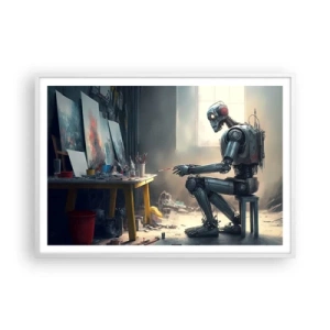 Póster en marco negro - Un robot pintando un cuadro en un estudio de arte. - 100x70cm - El acto de creación - Decoración de pared moderna para salón y dormitorio ARTTOR