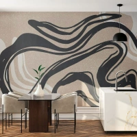 Fotomural Standard Eco - Líneas expresivas negras sobre un fondo beige. - 100x70cm - Expresión multiplicada - Decoración de pared moderna para salón y dormitorio ARTTOR