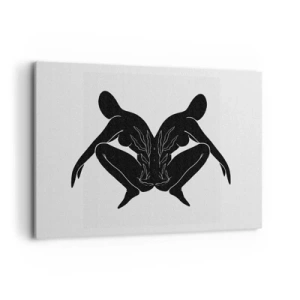 Cuadro sobre lienzo - Impresión de Imagen - Siluetas negras en posición simétrica sobre un fondo blanco. - 120x80cm - Un alma compartida - Decoración de pared moderna para salón y dormitorio ARTTOR