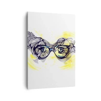 Cuadro sobre lienzo - Impresión de Imagen - Gráficos artísticos de gafas con ojos expresivos. - 70x100cm - A través de las gafas azules - Decoración de pared moderna para salón y dormitorio ARTTOR