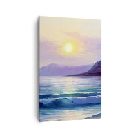 Cuadro sobre lienzo - Impresión de Imagen - Un pintoresco paisaje marino al atardecer con olas y montañas. - 80x120cm - Cristal de agua y aire - Decoración de pared moderna para salón y dormitorio ARTTOR