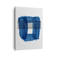 Cuadro sobre lienzo - Impresión de Imagen - Patrón abstracto en tonos azules con líneas negras. - 50x70cm - Composición azul y negra - Decoración de pared moderna para salón y dormitorio ARTTOR