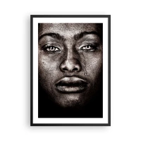 Póster en marco negro - Retrato de un rostro con una lágrima expresiva en estilo monocromático. - 50x70cm - Una lágrima - Decoración de pared moderna para salón y dormitorio ARTTOR