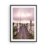 Póster en marco negro - Puente de bambú sobre aguas tranquilas al atardecer - 50x70cm - La tranquilidad de Asia - Decoración de pared moderna para salón y dormitorio ARTTOR