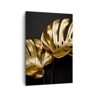 Cuadro sobre lienzo - Impresión de Imagen - Hojas de monstera doradas sobre fondo negro - 50x70cm - Tesoros de la naturaleza - Decoración de pared moderna para salón y dormitorio ARTTOR