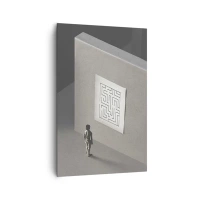 Cuadro sobre lienzo - Impresión de Imagen - Una figura en un laberinto mirando un mapa colgado. - 80x120cm - ¿Pero dónde estoy? - Decoración de pared moderna para salón y dormitorio ARTTOR