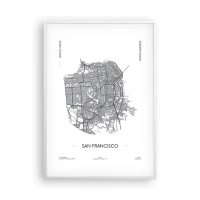 Cuadro sobre lienzo - Impresión de Imagen - Un mapa de San Francisco en un estilo minimalista en blanco y negro. - 70x100cm - Anatomía de San Francisco - Decoración de pared moderna para salón y dormitorio ARTTOR