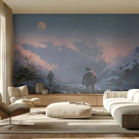 Fotomural Premium Canvas - Astronautas en un planeta alienígena con una nave espacial destrozada - 100x70cm - Bajo una estrella desconocida - Decoración de pared moderna para salón y dormitorio ARTTOR
