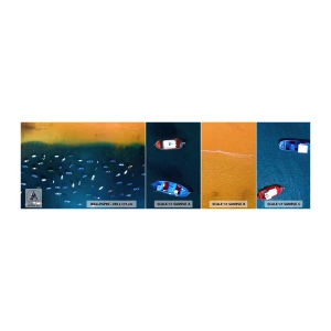 Muestra de fotomural autoadhesivo Deluxe Sticker - Un juego de vacaciones - Barcos, Playa, Costa - 100x30 cm