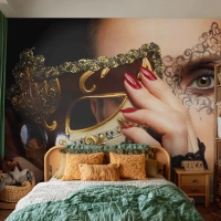 Fotomural Premium Sand - Mi mundo es barroco - Mujer, máscara veneciana, Pelota - 500x350 cm