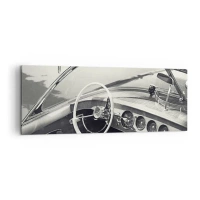 Cuadro sobre lienzo - Impresión de Imagen - Interior de coche clásico en estilo monocromático. - 140x50cm - Tiempo para los ricos - Decoración de pared moderna para salón y dormitorio ARTTOR