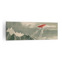 Cuadro sobre lienzo - Impresión de Imagen - Avión rojo sobre montañas nevadas - 160x50cm - Pionero sin miedo - Decoración de pared moderna para salón y dormitorio ARTTOR