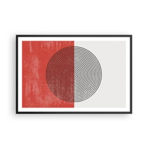 Póster en marco negro - Patrón geométrico con círculos concéntricos sobre un fondo rojo y blanco. - 100x70cm - En el corazón de la misma - Decoración de pared moderna para salón y dormitorio ARTTOR