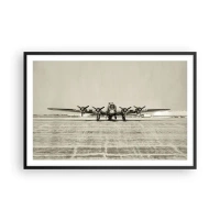Póster en marco negro - Avión histórico en el aeropuerto en sepia - 100x70cm - Como siempre, preparado - Decoración de pared moderna para salón y dormitorio ARTTOR