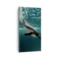 Cuadro sobre vidrio - Impresiones sobre Vidrio - Un pingüino sumergiéndose en las profundidades del agua helada. - 80x120cm - Bienvenido a mi mundo - Decoración de pared moderna para salón y dormitorio ARTTOR
