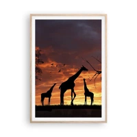 Cuadro sobre vidrio - Impresiones sobre Vidrio - Siluetas de jirafas con el atardecer africano como telón de fondo - 80x120cm - Una pequeña cena con tus seres queridos - Decoración de pared moderna para salón y dormitorio ARTTOR