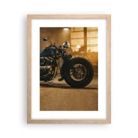 Cuadro sobre vidrio - Impresiones sobre Vidrio - Una motocicleta elegante en un interior industrial con iluminación cálida. - 70x100cm - Puedo hacer cualquier cosa - Decoración de pared moderna para salón y dormitorio ARTTOR