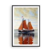 Cuadro sobre vidrio - Impresiones sobre Vidrio - Barcos de vela en un mar tranquilo al atardecer - 120x80cm - Navega, marinero.... - Decoración de pared moderna para salón y dormitorio ARTTOR
