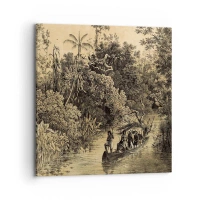 Cuadro sobre lienzo - Impresión de Imagen - Dibujo de una jungla con un barco en un río. - 70x100cm - Expedición a la fuente - Decoración de pared moderna para salón y dormitorio ARTTOR
