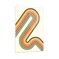 Cuadro sobre vidrio - Impresiones sobre Vidrio - Patrón geométrico en tonos verde, naranja y beige sobre un fondo claro. - 70x100cm - Zigzagueando hasta su destino - Decoración de pared moderna para salón y dormitorio ARTTOR