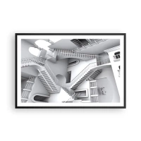 Póster en marco negro - Una composición abstracta de escaleras en una disposición espacial surrealista. - 100x70cm - Paradojas del espacio - Decoración de pared moderna para salón y dormitorio ARTTOR