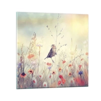 Cuadro sobre vidrio - Impresiones sobre Vidrio - Retrato de pájaro con prado de fondo - 40x40 cm