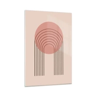 Cuadro sobre vidrio - Impresiones sobre Vidrio - Motivo abstracto con círculo rosa y líneas. - 80x120cm - Atracción irresistible - Decoración de pared moderna para salón y dormitorio ARTTOR