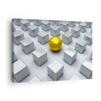 Cuadro sobre lienzo - Impresión de Imagen - Una esfera dorada que destaca entre los cubos plateados. - 120x80cm - ¿Por qué yo? Composición geométrica - Decoración de pared moderna para salón y dormitorio ARTTOR
