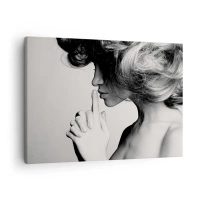 Cuadro sobre lienzo - Impresión de Imagen - Perfil en blanco y negro de una mujer haciendo un gesto de silencio. - 70x50cm - Escucharme a mí misma - Decoración de pared moderna para salón y dormitorio ARTTOR