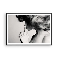 Póster en marco negro - Perfil en blanco y negro de una mujer haciendo un gesto de silencio. - 100x70cm - Escucharme a mí misma - Decoración de pared moderna para salón y dormitorio ARTTOR