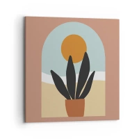 Cuadro sobre lienzo - Impresión de Imagen - Una planta negra en una maceta contra el sol. - 70x100cm - Pequeñas alegrías - Decoración de pared moderna para salón y dormitorio ARTTOR