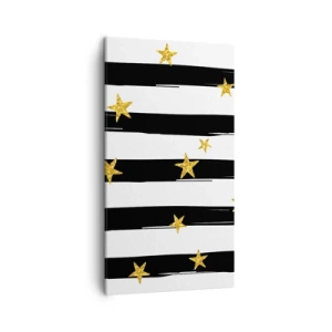 Cuadro sobre lienzo - Impresión de Imagen - Rayas blancas y negras con estrellas doradas - 80x120cm - Todos hemos nacido bajo una estrella de la suerte - Decoración de pared moderna para salón y dormitorio ARTTOR