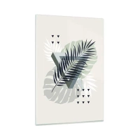 Cuadro sobre vidrio - Impresiones sobre Vidrio - Composición geométrica con hojas tropicales en tonos verdes. - 80x120cm - Naturaleza y geometría - Decoración de pared moderna para salón y dormitorio ARTTOR