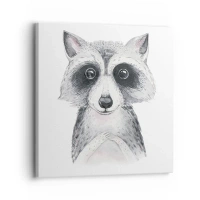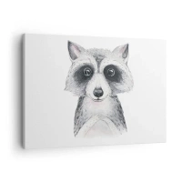 Cuadro sobre lienzo - Impresión de Imagen - Adorable retrato de un mapache sobre un fondo blanco. - 70x50cm - Un momento para la emoción - Decoración de pared moderna para salón y dormitorio ARTTOR