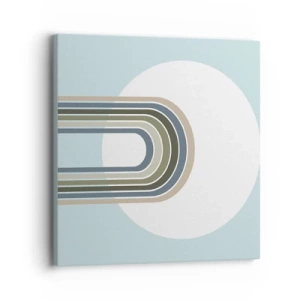 Cuadro sobre lienzo - Impresión de Imagen - Una composición minimalista con un círculo y líneas sobre un fondo pastel. - 70x50cm - Una atracción irresistible - Decoración de pared moderna para salón y dormitorio ARTTOR