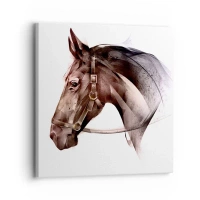 Cuadro sobre lienzo - Impresión de Imagen - Un perfil de caballo en una delicada forma artística sobre un fondo blanco. - 50x70cm - Elegancia - Decoración de pared moderna para salón y dormitorio ARTTOR