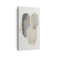 Cuadro sobre lienzo - Impresión de Imagen - Líneas doradas abstractas sobre un fondo gris - 80x120cm - Persistencia y movimiento - Decoración de pared moderna para salón y dormitorio ARTTOR