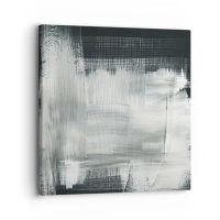 Cuadro sobre lienzo - Impresión de Imagen - Trazos abstractos blancos sobre un fondo oscuro - 50x70cm - Tejido vertical y horizontal - Decoración de pared moderna para salón y dormitorio ARTTOR