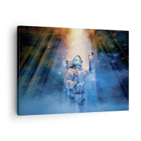 Cuadro sobre lienzo - Impresión de Imagen - Astronauta a la luz de una explosión cósmica llena de estrellas - 50x70cm - El descubrimiento - Decoración de pared moderna para salón y dormitorio ARTTOR