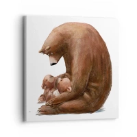Cuadro sobre lienzo - Impresión de Imagen - Una madre osa con dos ositos en sus brazos. - 50x70cm - Dulces sueños, niños - Decoración de pared moderna para salón y dormitorio ARTTOR