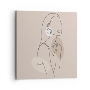 Cuadro sobre lienzo - Impresión de Imagen - Ilustración minimalista de una mujer con contornos sobre un fondo beige. - 70x100cm - Un icono de la inocencia - Decoración de pared moderna para salón y dormitorio ARTTOR