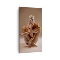 Cuadro sobre vidrio - Impresiones sobre Vidrio - Silueta artística de una mujer sobre un fondo beige. - 80x120cm - Unidad de cuerpo y espíritu - Decoración de pared moderna para salón y dormitorio ARTTOR
